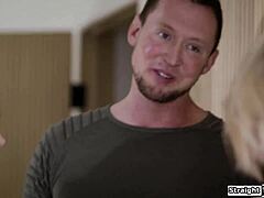 blonde student in heels skirt rides tutors huge cock cowgirl doggystyle rough