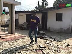 This bent over babe with big ass agrees to outdoor pussy licking for cash. Want to see her missionary cunilingus session at my place?