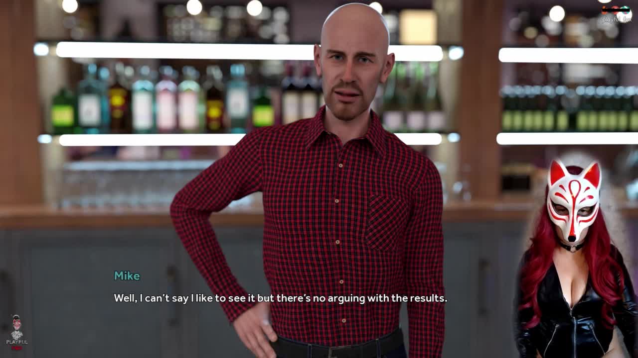 Hey, watch CFNM femdom instruct jerkoff at the bar!