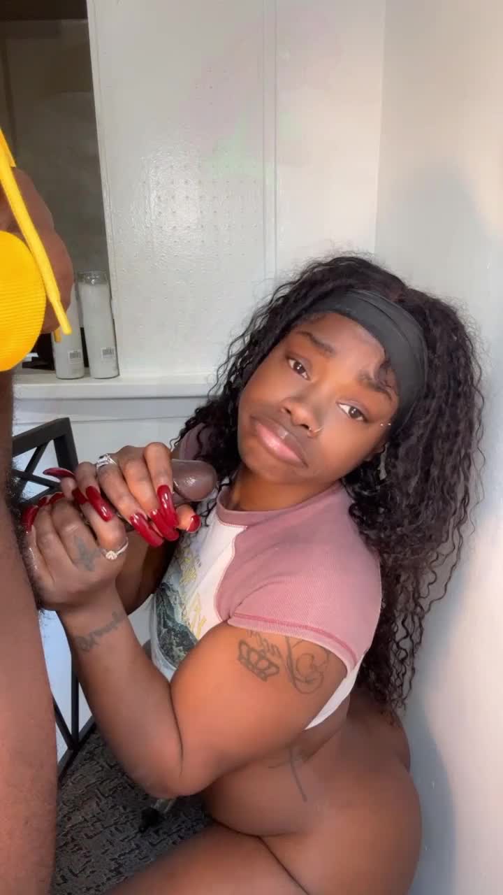 Hey, giving a blowjob while he’s watching my porn on the laptop, tons of cum in mouth!