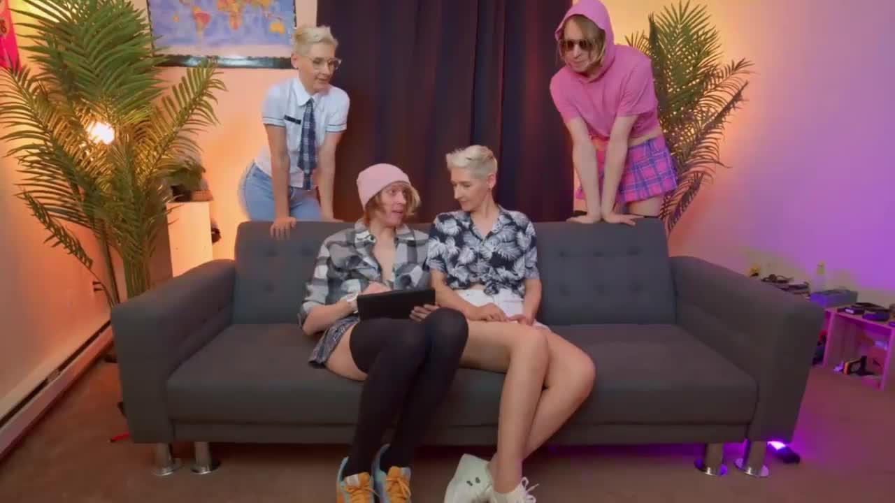Dominant babes pegging a guy’s tight asshole