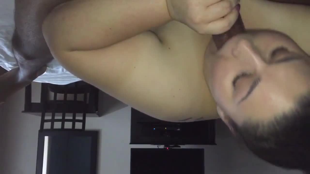 Hot Latina brunette boldly sucks my big cock with hardcore deepthroat.
