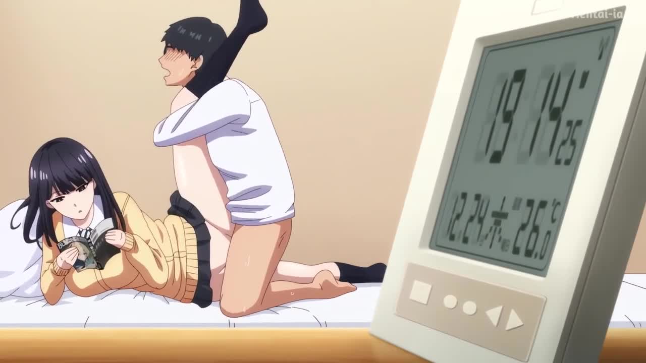 Petite brunette sucks big cock and rides to creampie in hentai anime style