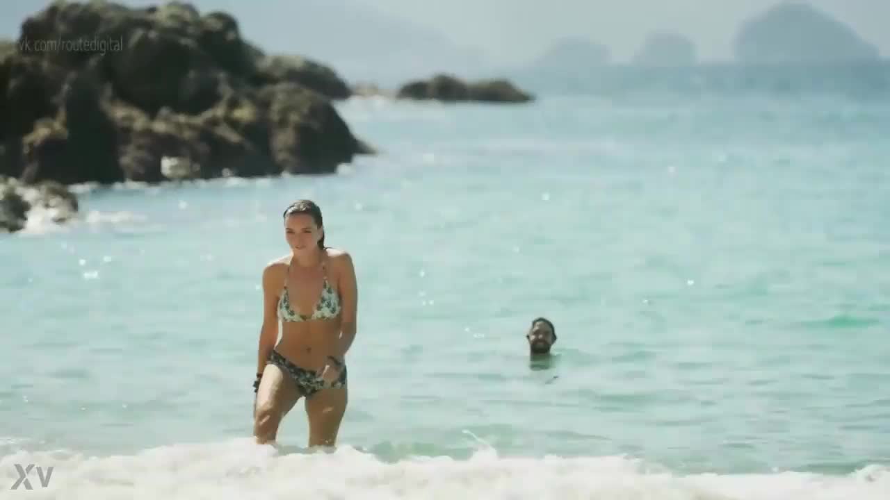 Pretty beach babe teases with her tight little pussy in hot bikini action.
