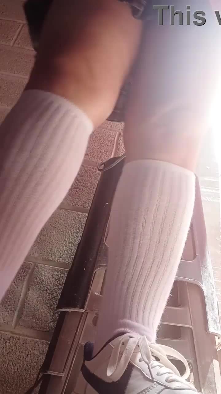 ladyboy sugus casually shows her gun under skirt with stockings and panties in pov