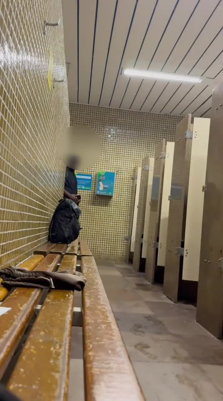 cruising with a chubby bear in public toilets, monster cock action teaser 🍆🚽